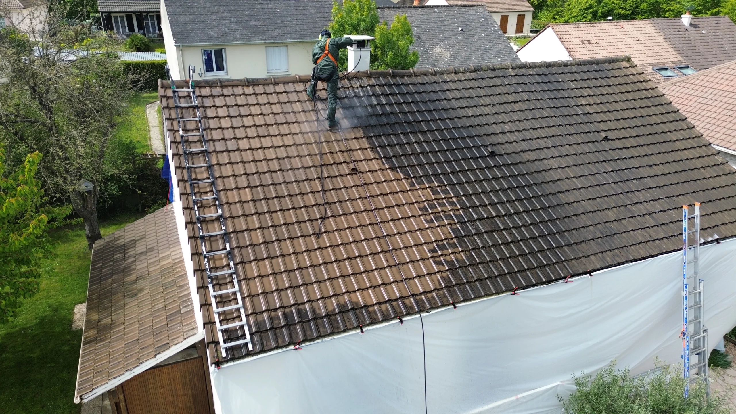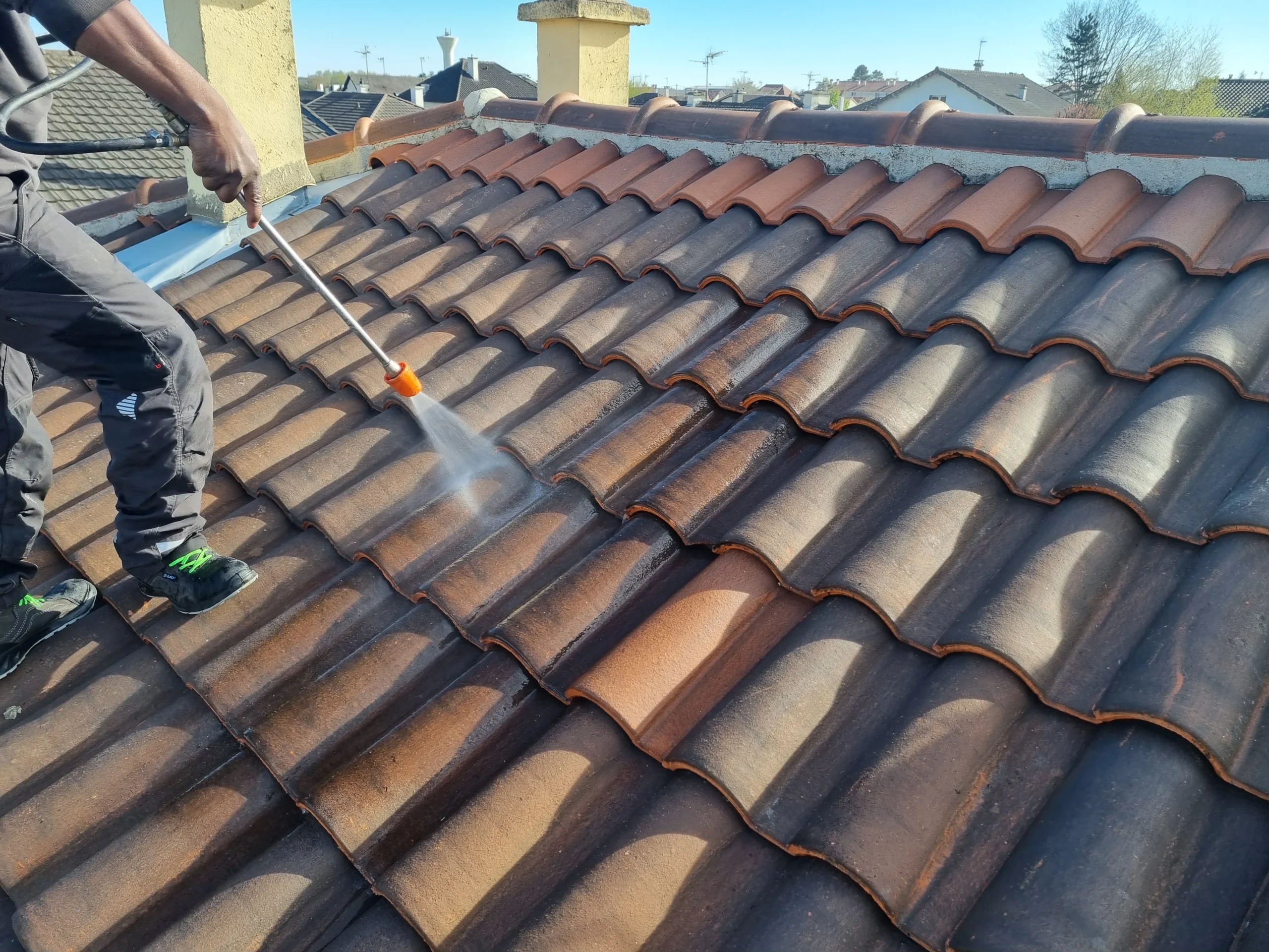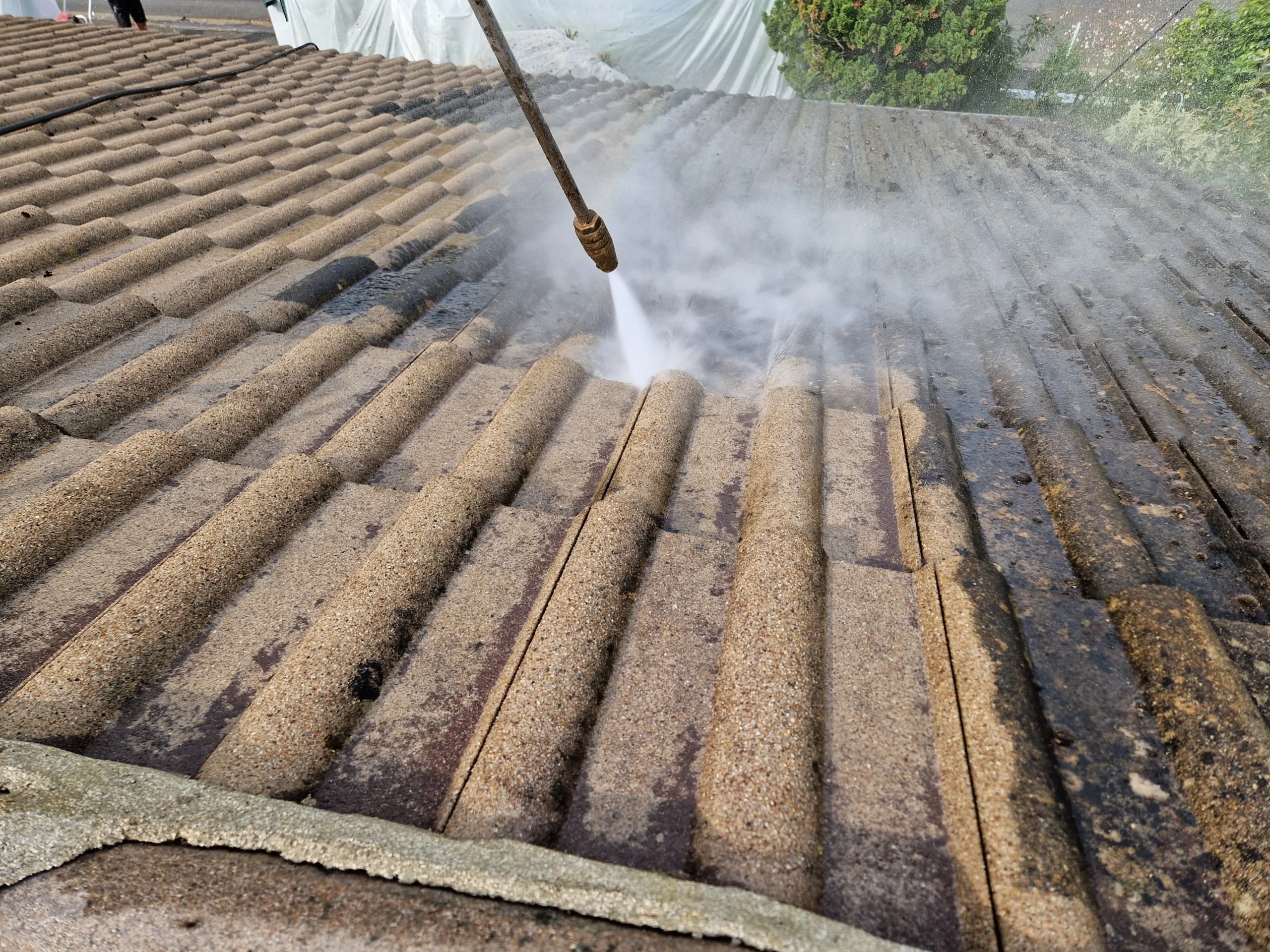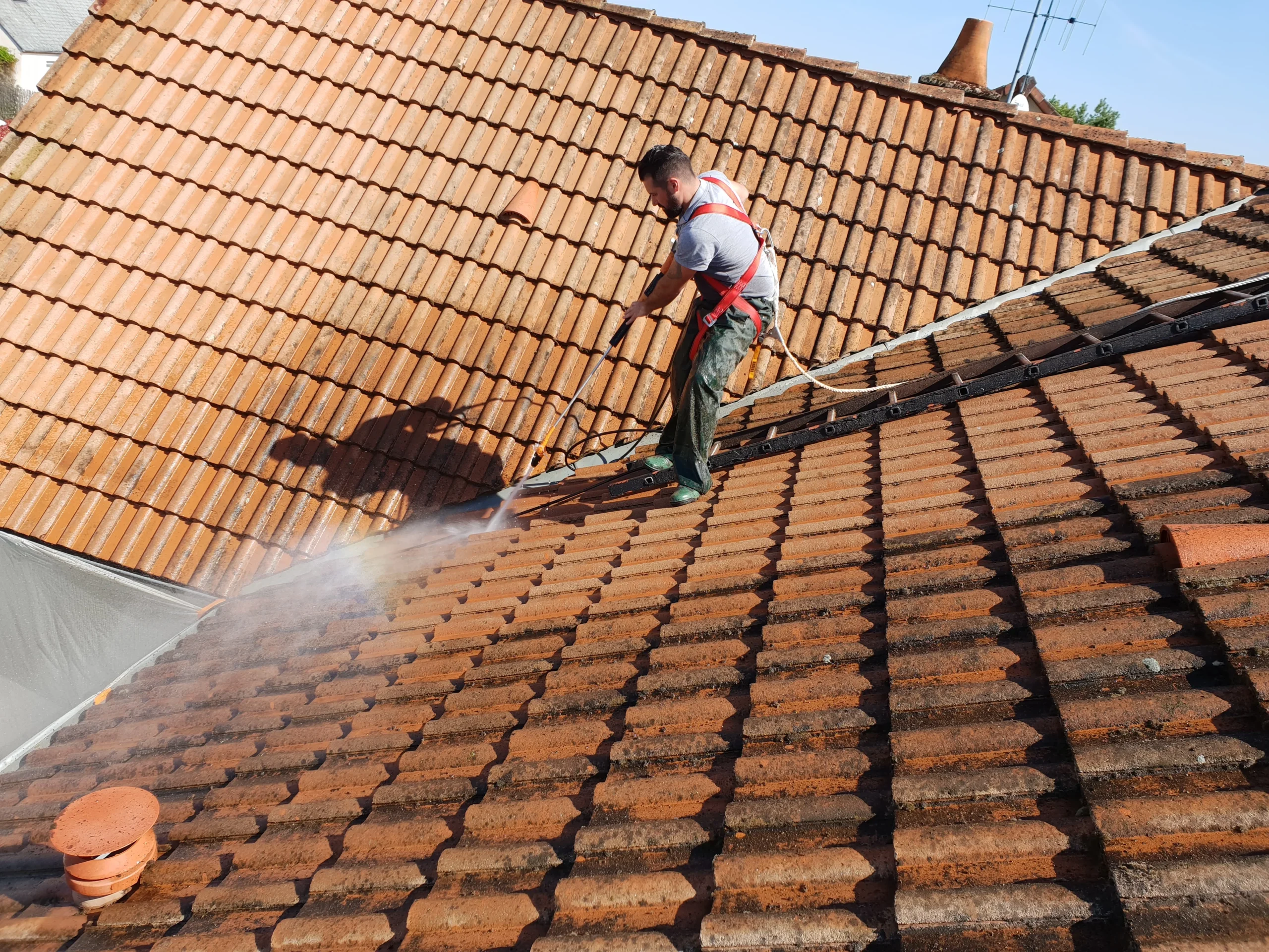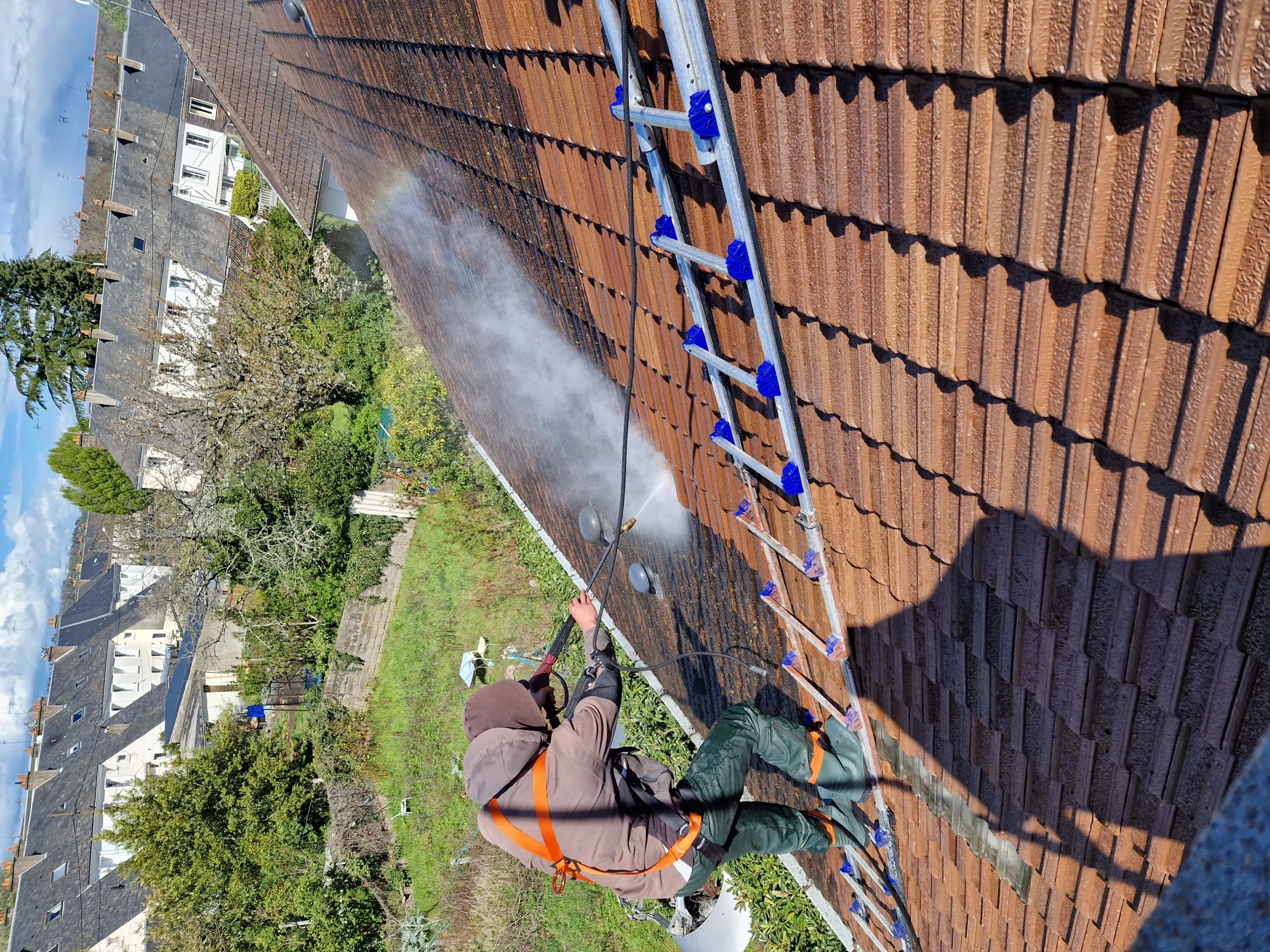 Lavage à basse ou moyenne pression pour éliminer les résidus et salissures sans abîmer vos tuiles ou ardoises. Si nécessaire, application d’un produit nettoyant biodégradable.